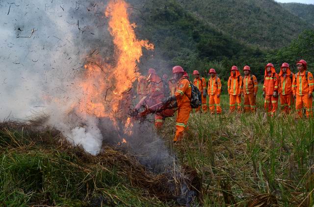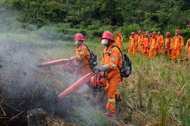 熊熊的火焰顿时化为滚滚浓烟,森林消防队员扛着消防器具冲向火场......这一幕并不是演电影,也不是哪里发生森林火灾,而是专业森林消防队在牛浪坡隧道口附近进行森林防火实战演练。