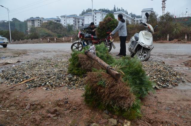 新春伊始,正是造林绿化的好时机,三江县林业局免费发放苗木的现场人头攒动,热闹非凡。有的人正忙着将苗木卸车,有的人忙着发苗,有的人忙着搬苗,将一捆捆苗木绑在摩托车后面或直接提着走。原来这是县林业局组织营林站的技术人员在向林农免费发放苗木。一位领到苗木的古宜镇中年妇女高兴地对笔者说:“今年我家刚好整地备耕好,听说林业部门免费发放苗木,今早一早我老公就叫我一起来领苗,回去我们就直接可以拿去种了。林业部门这个发苗活动好呀,感谢林业局,感谢政府。”县林业局营林站站长欧秀林说:“今天县林业局发放了近50万株杉木苗,这是我们调运良种苗木的证书,过几天还将发放31万株珍贵树苗。”